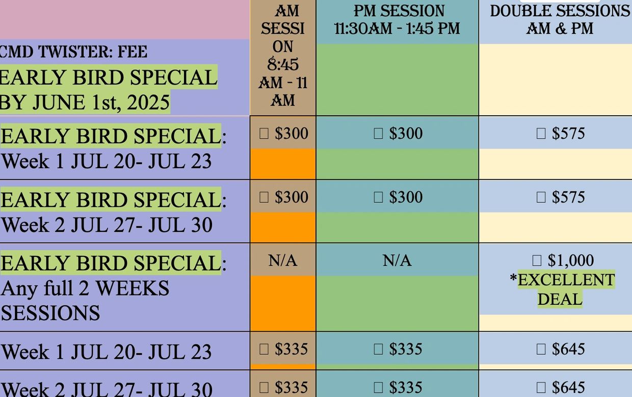 You can use above google form to register in lieu of paper form below but be sure to read forms below briefly before you reserve your spot.